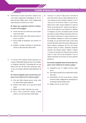 6. Kelimelerden her ikisi veya ikincisi, birleşme sıra- 8. Türkiye’de ne yazık ki kitap okuma oranında bir