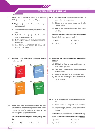 8. Aşağıdaki kitap isimlerinin hangisinde yazım 11. Aşağıdaki cümlelerin hangisinde yazım yanlışı