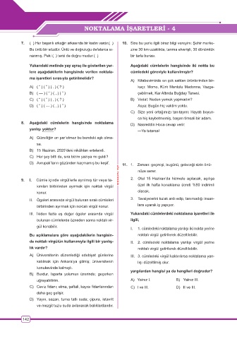 8. Aşağıdaki cümlelerin hangisinde noktalama D) Nasreddin Hoca cevap verir: