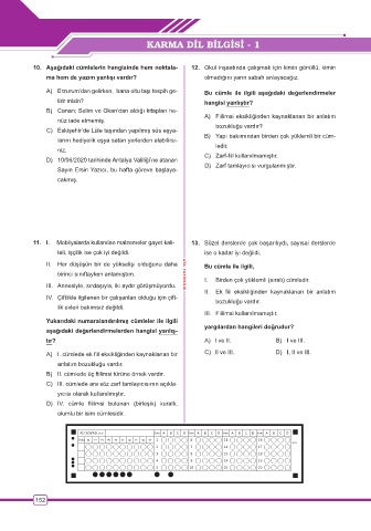 10. Aşağıdaki cümlelerin hangisinde hem noktala- 12. Okul inşaatında çalışmak için kimin gönüllü, kimin