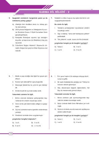 IV. Dördüncü cümlede özne vurgulanmıştır. yargılardan hangisi ya da hangileri yanlıştır?