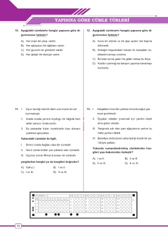 10. Aşağıdaki cümlelerin hangisi yapısına göre di- 12. Aşağıdaki cümlelerin hangisi yapısına göre di-