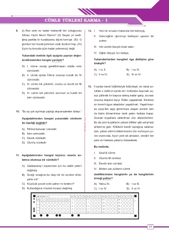9. (I) Ben sizin ne kadar maharetli biri olduğunuzu 12. I. Yeni bir umudun habercisi her bekleyiş.