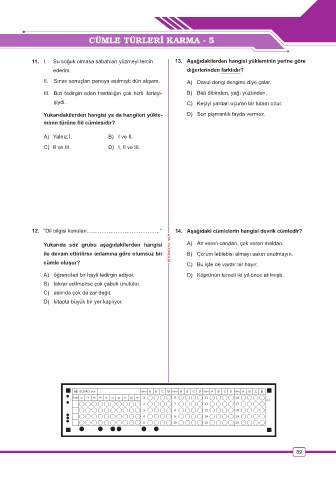 11. I. Su soğuk olmasa sabahları yüzmeyi tercih 13. Aşağıdakilerden hangisi yükleminin yerine göre