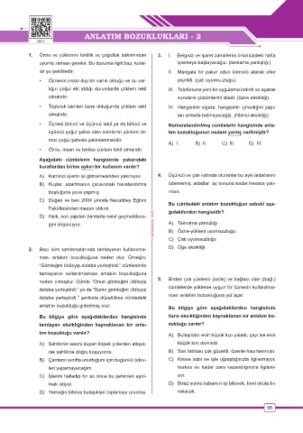 • Öznesi birinci ve üçüncü tekil ya da birinci ve Numaralandırılmış cümlelerin hangisinde anla-