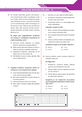 11. Aşağıdaki cümlelerin hangisinde anlatım bo-