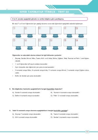 A) Serdar 9 numaralı sıraya oturacaktır. B) Teoman 4 numaralı sıraya oturacaktır.