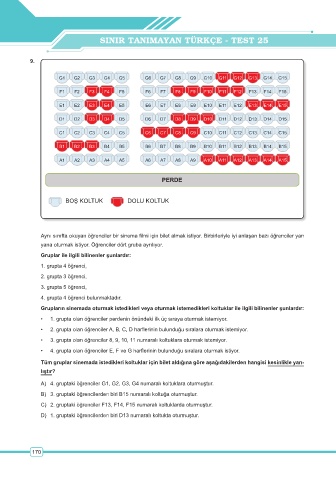 • 1. grupta olan öğrenciler perdenin önündeki ilk üç sıraya oturmak istemiyor.
