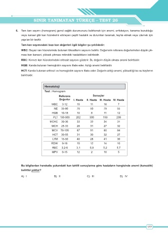 Bu bilgilerden hareketle yukarıdaki kan tahlili sonuçlarına göre hastaların hangisinde anemi (kansızlık)