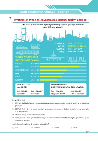 IV. 2017 yılı Ocak – Ekim aylarında İstanbul’a gelen yabancı turist sayısında bir önceki yılın aynı aylarına göre 2