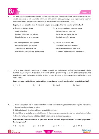 6. Her insan çeşitli duyguların etkisi altında kalır, bu duygulara göre hareket eder. Fakat sanatçılar için durum fark-