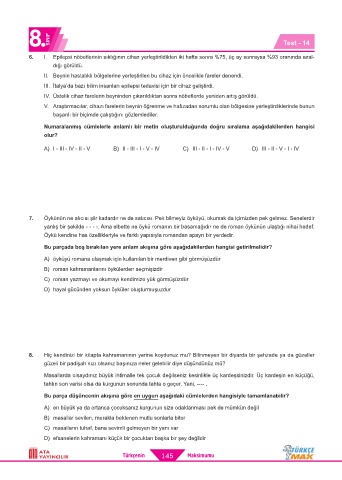 Numaralanmış cümlelerle anlamlı bir metin oluşturulduğunda doğru sıralama aşağıdakilerden hangisi