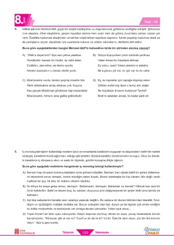 5. İstiklal şairimiz Mehmet Akif, güçlü bir eleştiri kabiliyetine ve düşündürerek güldürme özelliğine sahiptir. Şiirlerinde