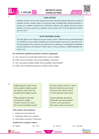 8 SINIF 2. BÖLÜM METİNLER ARASI Test - 17 4627