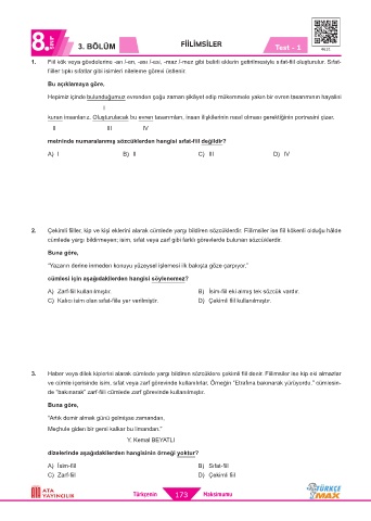 8 SINIF 3. BÖLÜM FİİLİMSİLER Test - 1 4631