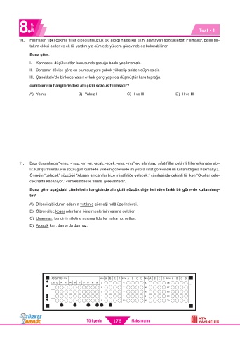 11. Bazı durumlarda “-mez, -maz, -ar, -er, -acak, -ecek, -mış, -miş” eki alan bazı sıfat-fiiller çekimli fiillerle karıştırılabi-