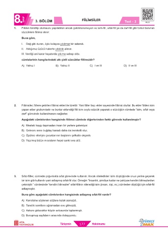8 SINIF 3. BÖLÜM FİİLİMSİLER Test - 2 4632
