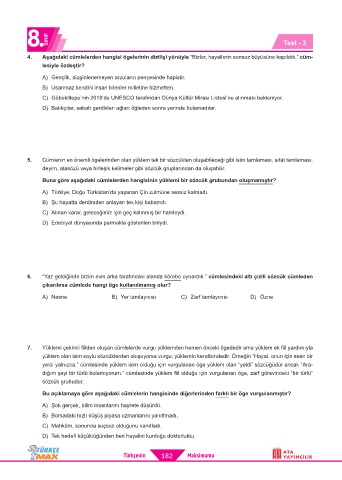 4. Aşağıdaki cümlelerden hangisi ögelerinin dizilişi yönüyle “Bizler, hayallerin sonsuz büyüsüne kapıldık.” cüm-
