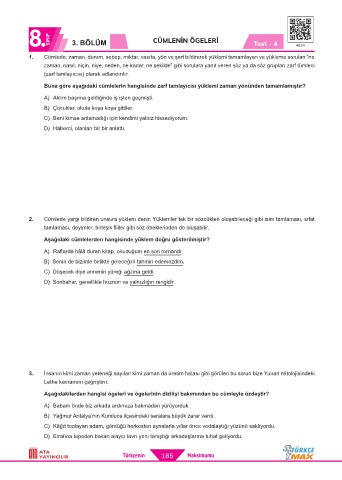 8 SINIF 3. BÖLÜM CÜMLENİN ÖGELERİ Test - 4 4634