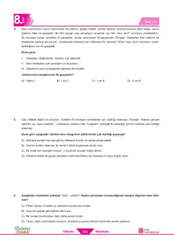 6. Aşağıdaki cümlelerin yüklemi “özne - yüklem” ilişkisi yönünden incelendiğinde hangisi diğerlerinden fark-
