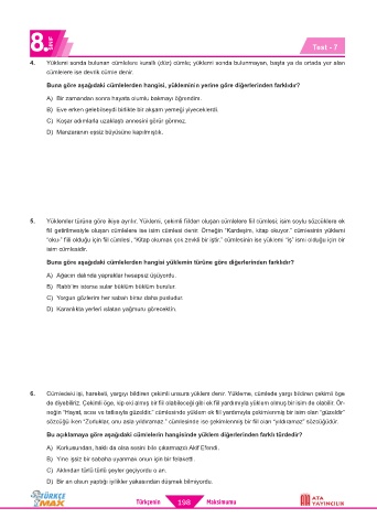 5. Yüklemler türüne göre ikiye ayrılır. Yüklemi, çekimli fiilden oluşan cümlelere fiil cümlesi; isim soylu sözcüklere ek