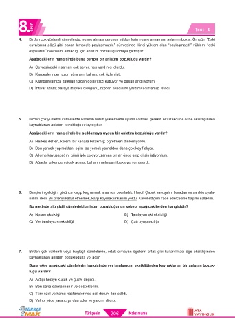 Bu metinde altı çizili cümledeki anlatım bozukluğunun sebebi aşağıdakilerden hangisidir?