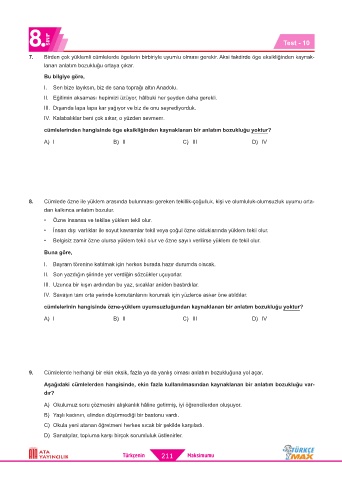 8. Cümlede özne ile yüklem arasında bulunması gereken tekillik-çoğulluk, kişi ve olumluluk-olumsuzluk uyumu orta-