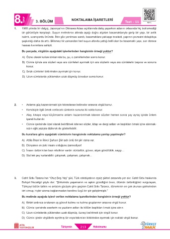 8 SINIF 3. BÖLÜM NOKTALAMA İŞARETLERİ Test - 11 4641