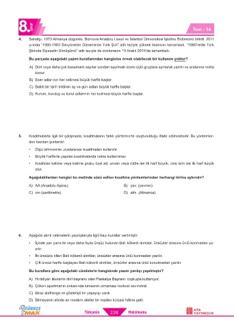 6. Aşağıda alıntı kelimelerin yazılışlarıyla ilgili bazı kurallar verilmiştir: