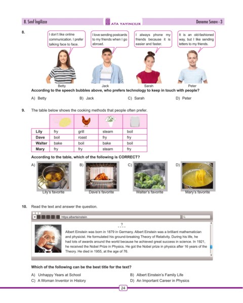 8. Sınıf İngilizce Deneme Sınavı - 3