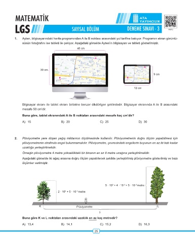 1. Ayten, bilgisayarındaki harita programından A ile B noktası arasındaki yol tarifine bakıyor. Programın ekran görüntü-