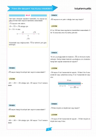 ò35 sayısı hangi iki ardışık tam sayının arasındadır? ò30 sayısı 5 ile 6 arasında bir sayıdır. 10’dan 5 ile 6 ara-