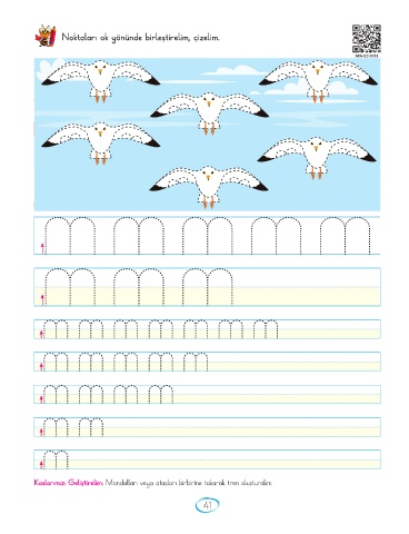 Noktaları ok yönünde birleştirelim, çizelim. Kasl arımızı Geliştir elim: Kaslarımızı Geliştirelim: Mandalları veya ataşları birbirine takarak tren oluşturalım. 41