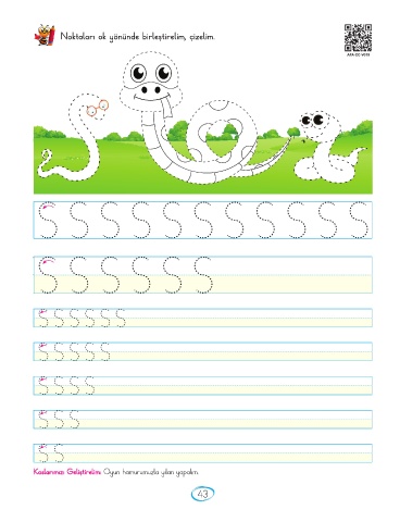 Noktaları ok yönünde birleştirelim, çizelim. Kasl arımızı Geliştir elim: Kaslarımızı Geliştirelim: Oyun hamurumuzla yılan yapalım. 43