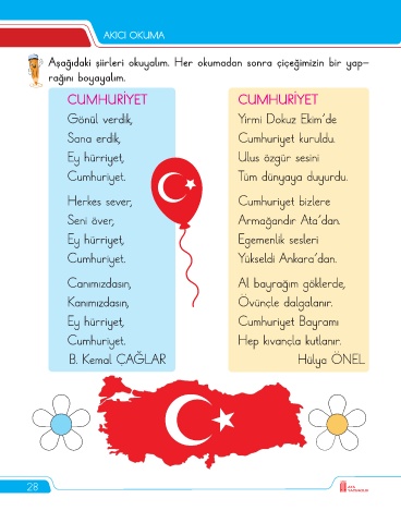 Aşağıdaki şiirleri okuyalım. Her okumadan sonra çiçeğimizin bir yap-