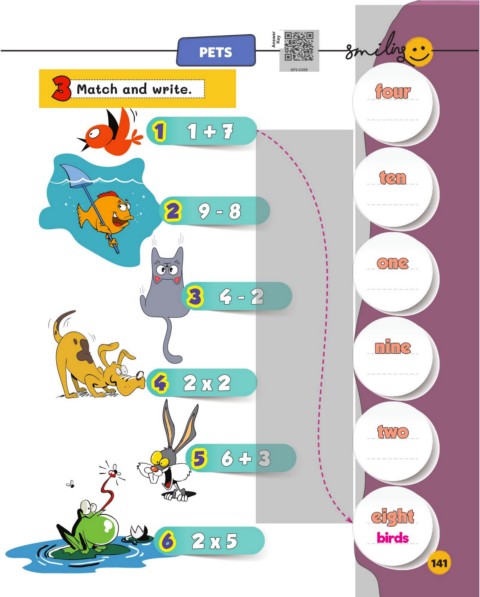 Answer Key PETS 3 3 Match and write. four four 1 + 7 1 1 1 + 7 ten ten 2 2 9 - 8 9 - 8 one one 3 3 4 - 2 4 - 2 nine nine 4 4 2 x 22 x 2 two two 5 5 6 + 36 + 3 eight eight 6 6 2 x 5 birds 2 x 5 141