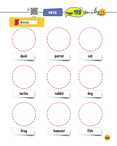Answer Key PETS Page 198198 Page 5 5 Stick. duck parrot cat turtle rabbit dog frog hamster fish 143