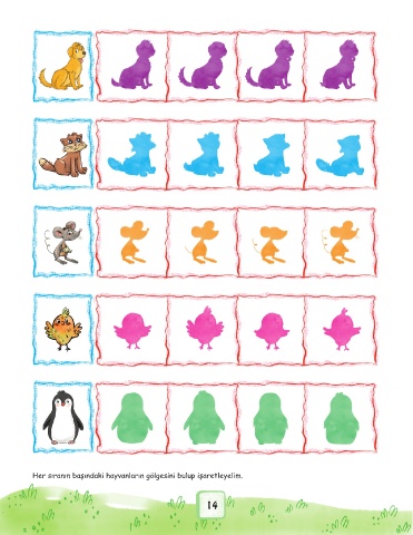 Her sıranın başındaki hayvanların gölgesini bulup işaretleyelim. 14