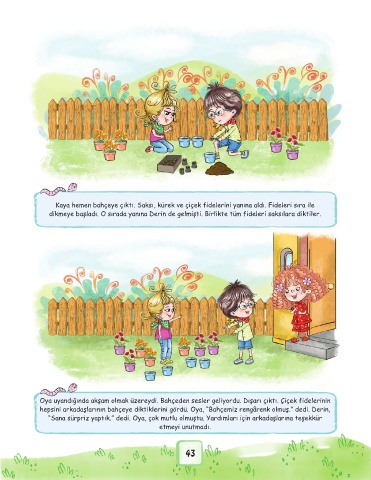 hepsini arkadaşlarının bahçeye diktiklerini gördü. Oya, “Bahçemiz rengârenk olmuş.” dedi. Derin,
