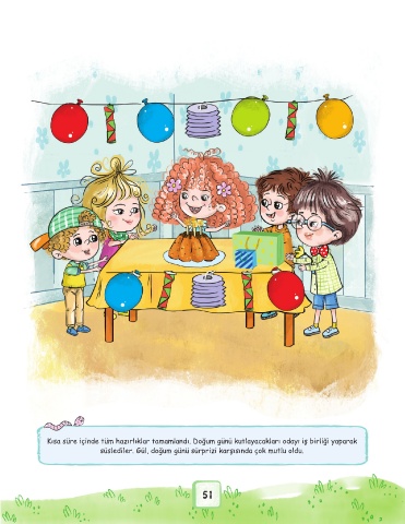 Kısa süre içinde tüm hazırlıklar tamamlandı. Doğum günü kutlayacakları odayı iş birliği yaparak süslediler. Gül, doğum günü sürprizi karşısında çok mutlu oldu. 51