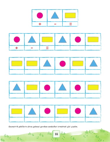 Geometrik şekillerin altına gelmesi gereken sembolleri örnekteki gibi çizelim. 55