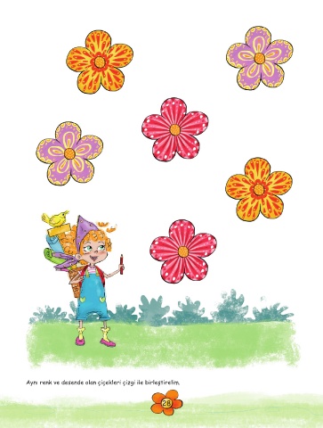 Aynı renk ve desende olan çiçekleri çizgi ile birleştirelim. 28