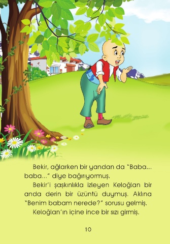 Bekir, ağlarken bir yandan da “Baba... baba...” diye bağırıyormuş. Bekir’i şaşkınlıkla izleyen Keloğlan bir anda derin bir üzüntü duymuş. Aklına “Benim babam nerede?” sorusu gelmiş. Keloğlan’ın içine ince bir sızı girmiş. 10