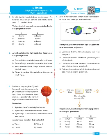 1. Bir gök cisminin kendi etrafında tur atmasıyla I 4. Ay’ın iki hareketi vardır. Ay hem kendi ekseni etrafın-
