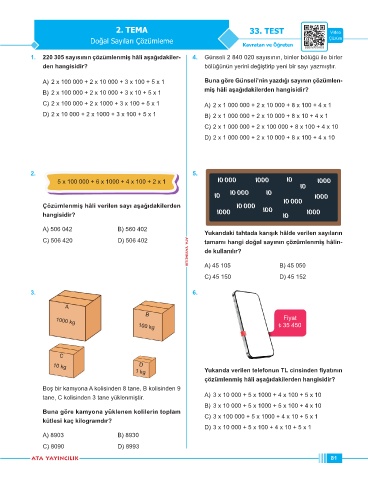 1. 220 305 sayısının çözümlenmiş hâli aşağıdakiler- 4. Günseli 2 840 020 sayısının, binler bölüğü ile birler