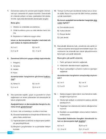 C) II ve III D) I, II ve III mokrasinin bu anlamda tam olarak işleyebilmesinin