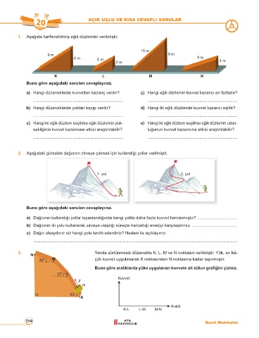 a) Hangi düzeneklerde kuvvetten kazanç vardır? ç) Hangi eğik düzlemin kuvvet kazancı en fazladır?