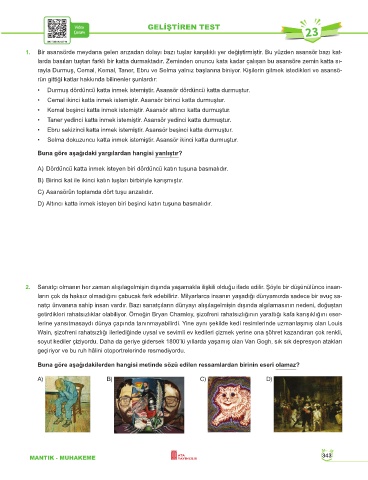 Page 344 - Yeni Ben Korkmam 8. Sınıf Türkçe