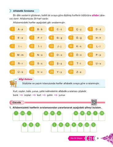 1. Alfabemizdeki harflerin sıralamasından yararlanarak aşağıdaki şifreyi bulalım.