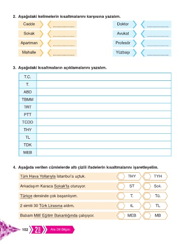 2. Aşağıdaki kelimelerin kısaltmalarını karşısına yazalım.